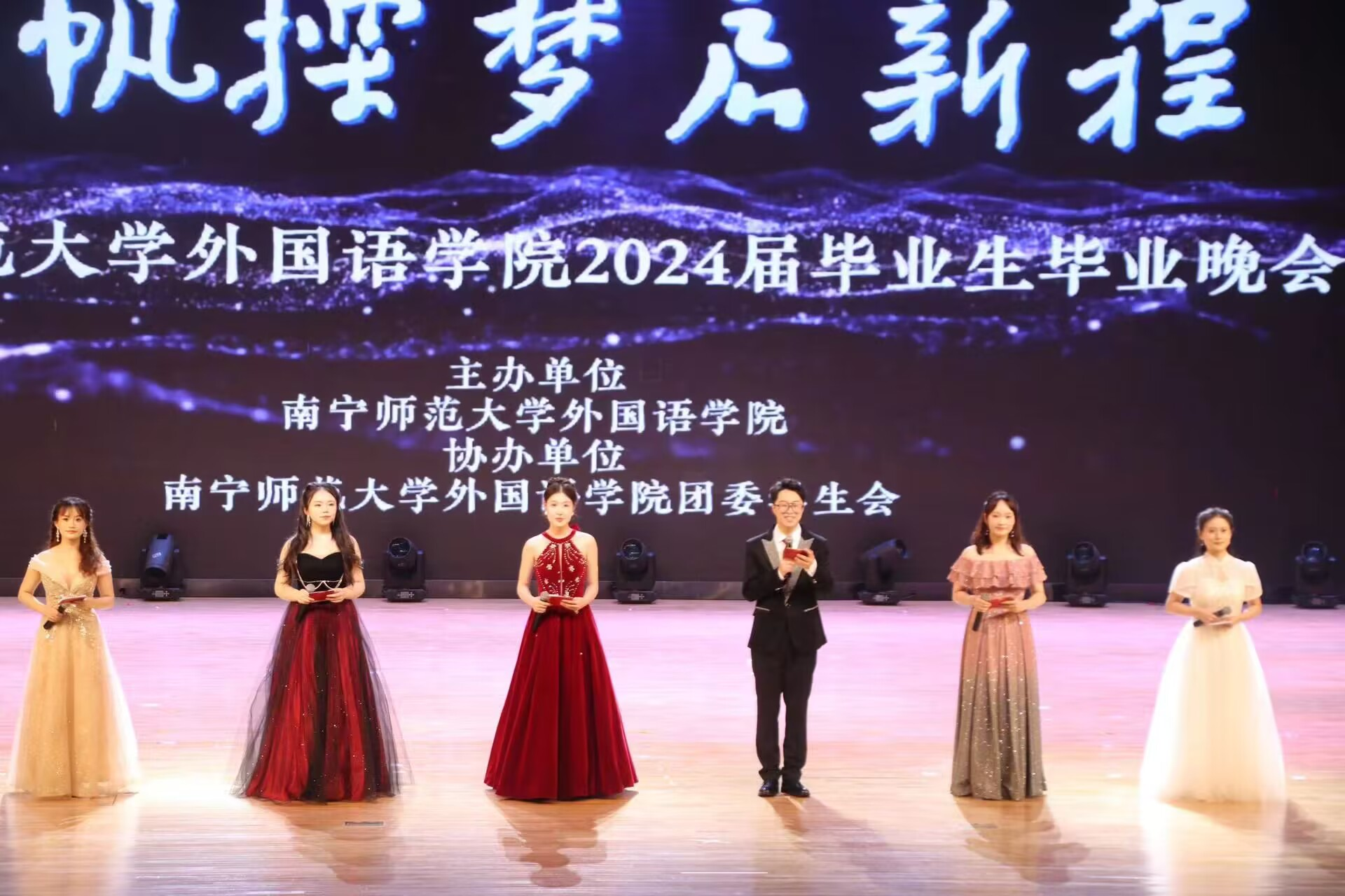 在武鸣校区音舞院千人演播厅成功举办2024届“青春踏浪逐芳华,扬帆探梦启新程”毕业生毕业晚会。国产自慰