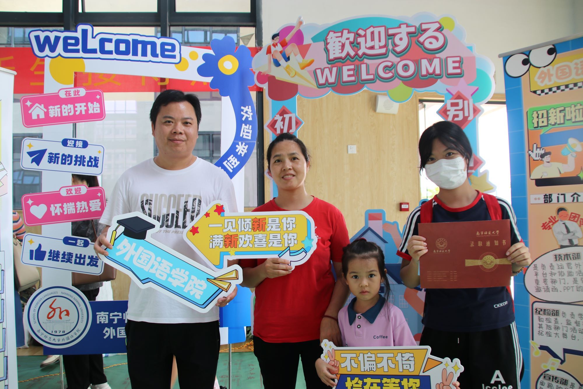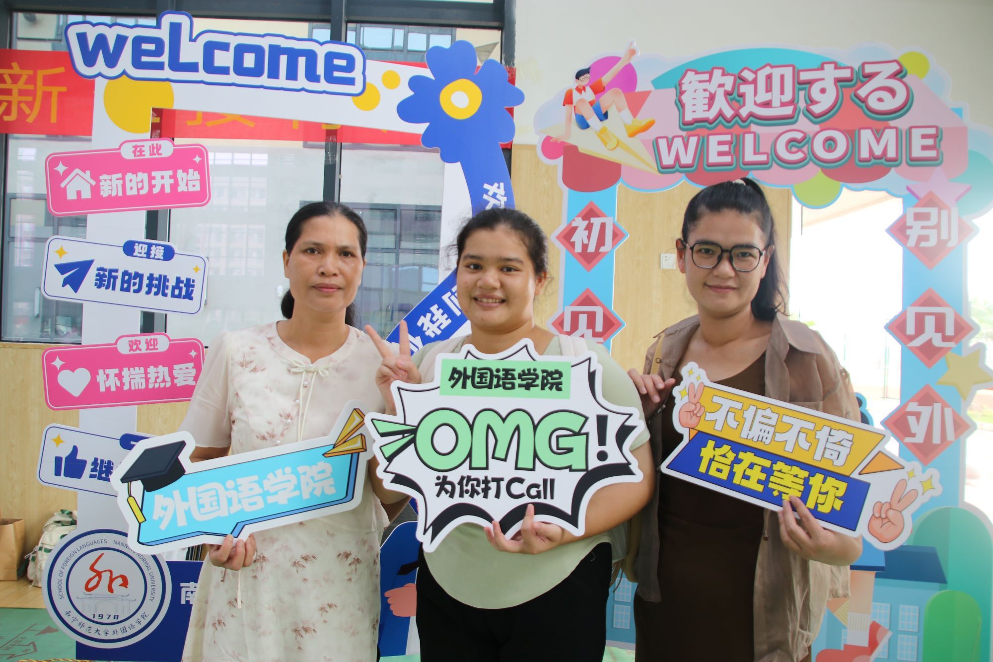 新成员,为初到南师大的新同学们送上第一份关怀。志愿者们热情洋溢地向新生和家长们介绍学校情况及注意事项,接待并引导新生进行报到、注册,记录新生们初到外院时的笑颜,并带领他们参观校园,帮助他们更快更好地适应校园生活。学院领导班子和新生班主任在当天走访了新生宿舍,表达了对新生的深厚关切与暖心问候。