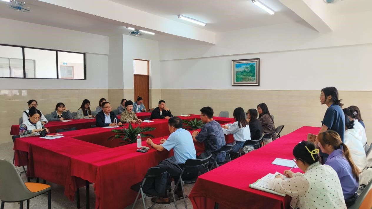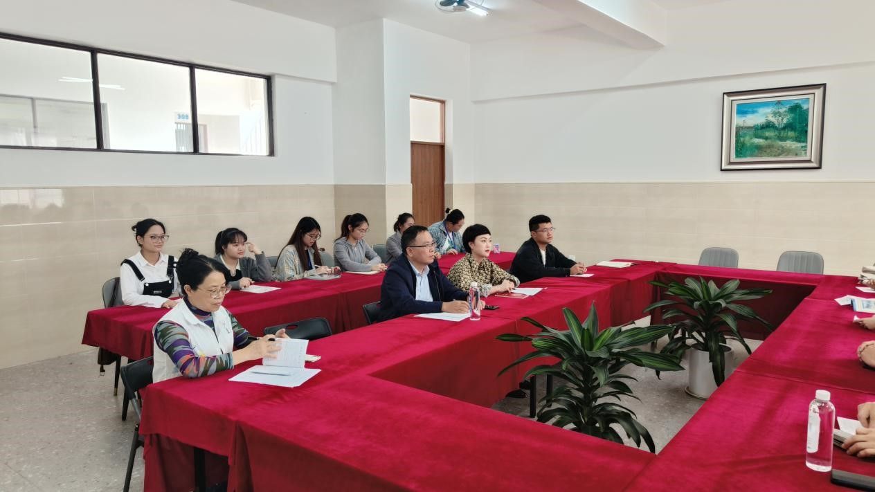 在座谈会上,苏华书记与实习学校的督导室副主任索祖金、教务处主任刘燕华等领导、实习指导教师及实习生进行了深入交流。索主任代表实习学校肯定了我院实习生尽职尽责、主动请教、认真学习的态度和扎实的专业知识与技能,建议大家多向经验丰富的老师学习。刘主任和实习指导教师滕爱玲老师、刘佩老师对具体教学提出了评价建议,指出两位实习生在公开课上表现得大方从容,对课堂节奏的把握张弛有度;教学目标清晰合理,充分体现了以学生为中心的教学理念;课堂活动设计巧妙,调动了学生课堂学习的参与度;并对电子板书书写、语法拼写以及对学生回答问题后的回应等方面提出建议。接着,苏华书记在讲话中指出,非常感谢大家育才未来学校为实习生提供的实习机会,并对实习生们寄予殷切期望,他叮嘱实习生们要珍惜此次实习机会,学会将理论知识融入实践,严格遵守实习学校的规章制度,确保实习期间的安全,高效地完成实习任务。最后,以座谈访谈方式进行访企拓岗交流及就业调研,加深了对大家育才未来学校人才需求的了解,为学院今后的人才培养和就业工作提供了参考。