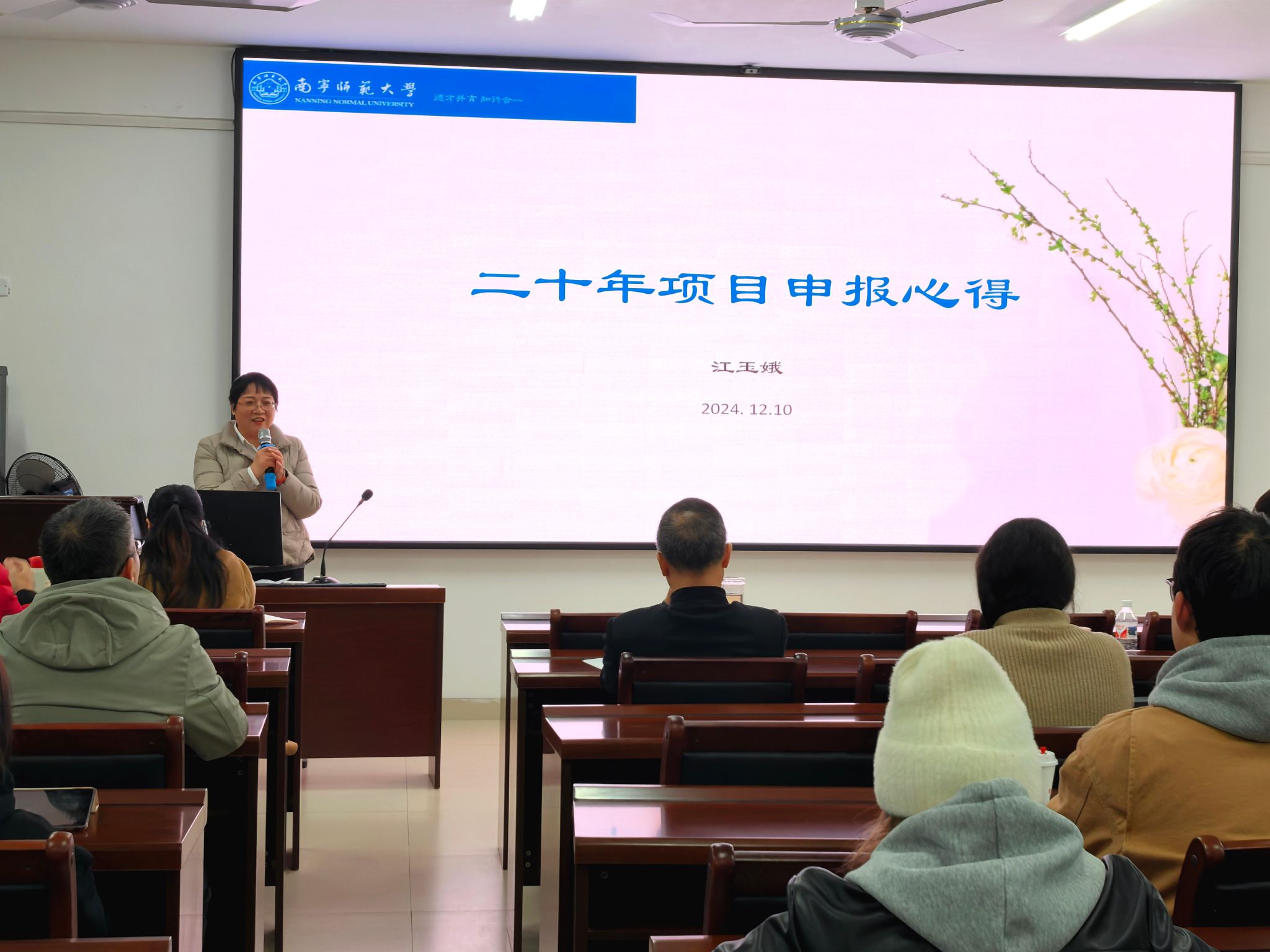 师生的学术热情,提升科研水平,我院于2024年12月10日下午14:20在武鸣校区实验楼1B-515室成功举办了2024年度学术沙龙。姚本标、黄信、赵凤玉、江玉娥、蒙岚、郑鼎耀六位教授及老师在此次沙龙中分享了他们的学术成果与课题申报经验,探讨了智能教学模式以及人工智能在教学与应用中的新趋势,为师生们呈现了一场别开生面的思想盛宴。