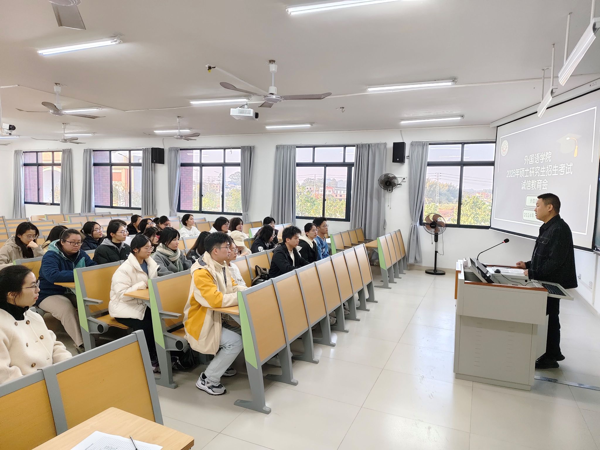 在实验楼2A-1202召开2025年硕士研究生招生考试诚信教育会,会议旨在加强考研学生的诚信意识,确保考试的公正性和严肃性。本次会议由国产自慰