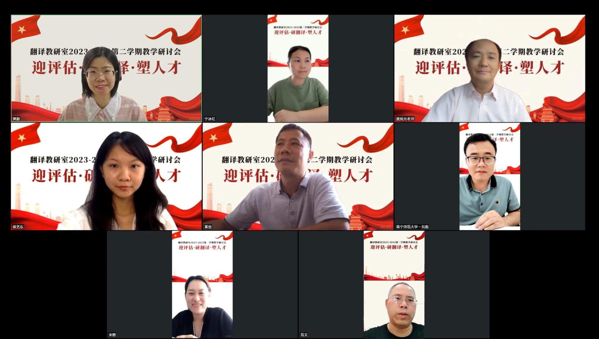 2024年4月26日下午,国产自慰 翻译教研室全体成员齐聚线上,围绕迎评促建主题,展开了一场深入的教学研讨活动。此次活动旨在全面提升翻译专业的教学质量,以积极、奋进的姿态迎接即将到来的评估工作,进一步推动翻译专业的蓬勃发展。