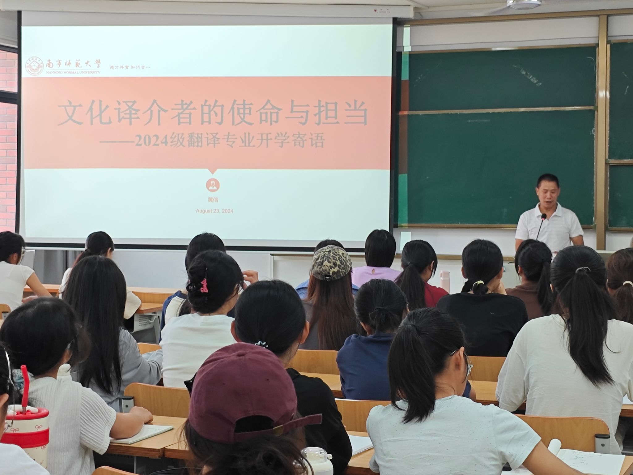 翻译教研室在武鸣校区实验 2C302 教室举行 2024 级翻译专业导学会。本次导学会由教研室主任樊毅主持,唐旭光副教授、范文副教授、黄信副教授、侯艺东老师以及 2024 级翻译 1 班和 2 班的新生共同参与。