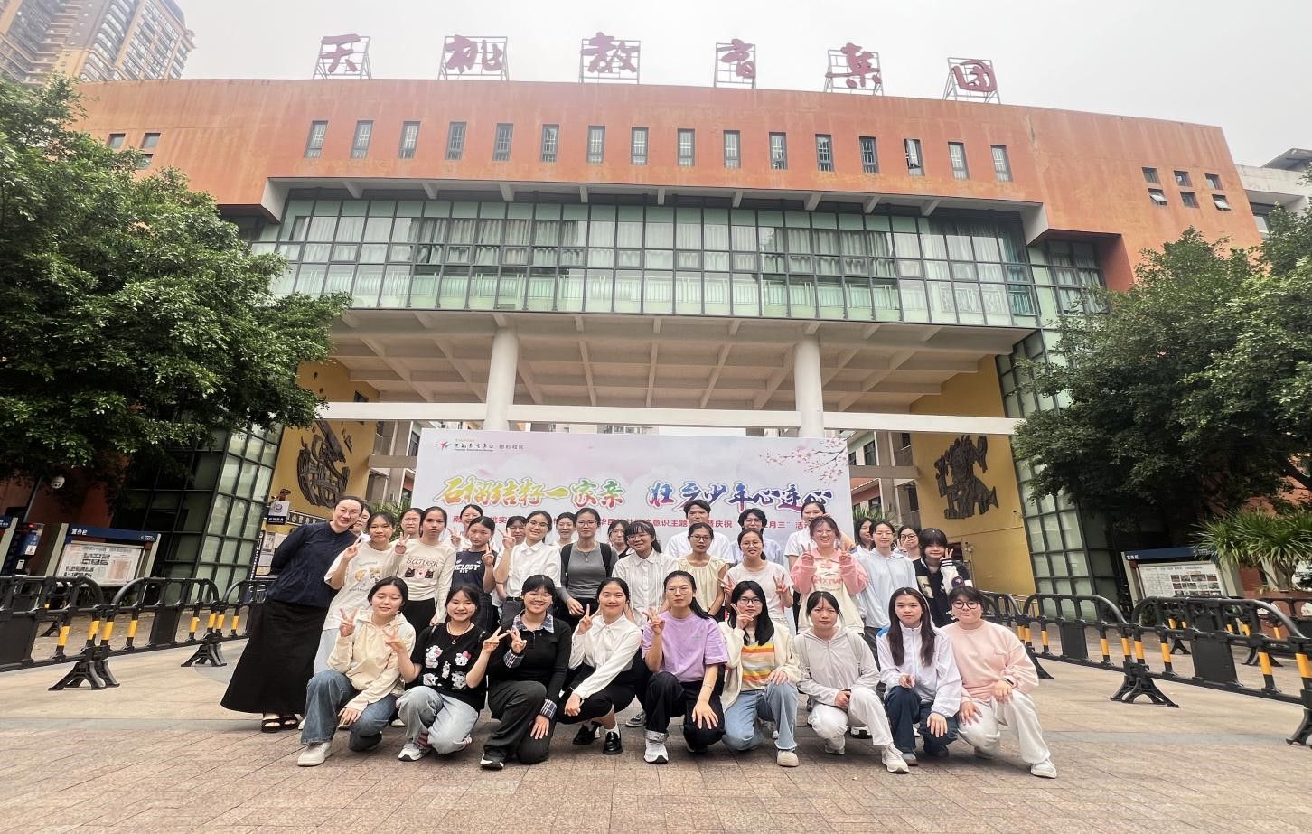 英语专业2023级陶行知实验班的同学们在班主任刘婷婷老师的带领下,来到南宁市天桃实验小学银杉校区,以“传承回响,拥抱世界,用英语讲中华民族文化”为设计主题参与到了该校举办的铸牢中华民族共同体意识教育暨2025年广西“三月三”庆祝活动中。