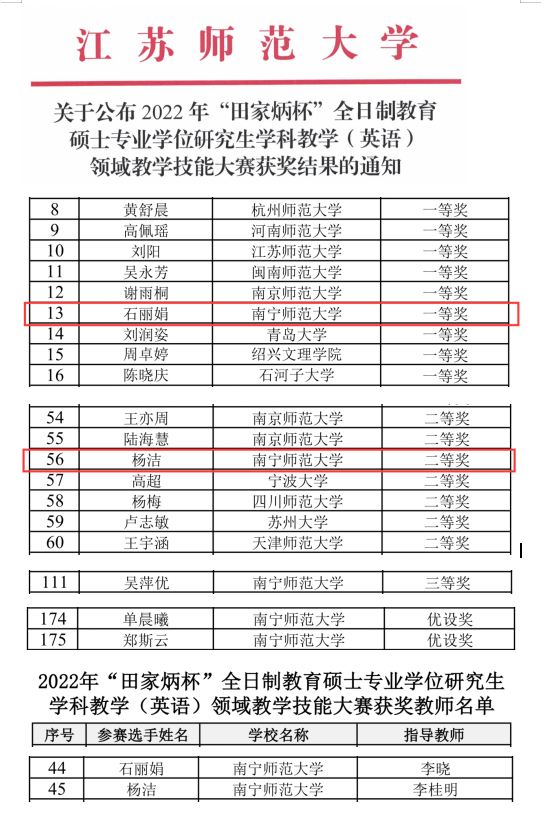 近日,2022年“田家炳杯”全日制教育硕士专业学位研究生学科教学(英语)教学技能大赛获奖名单公布,国产自慰