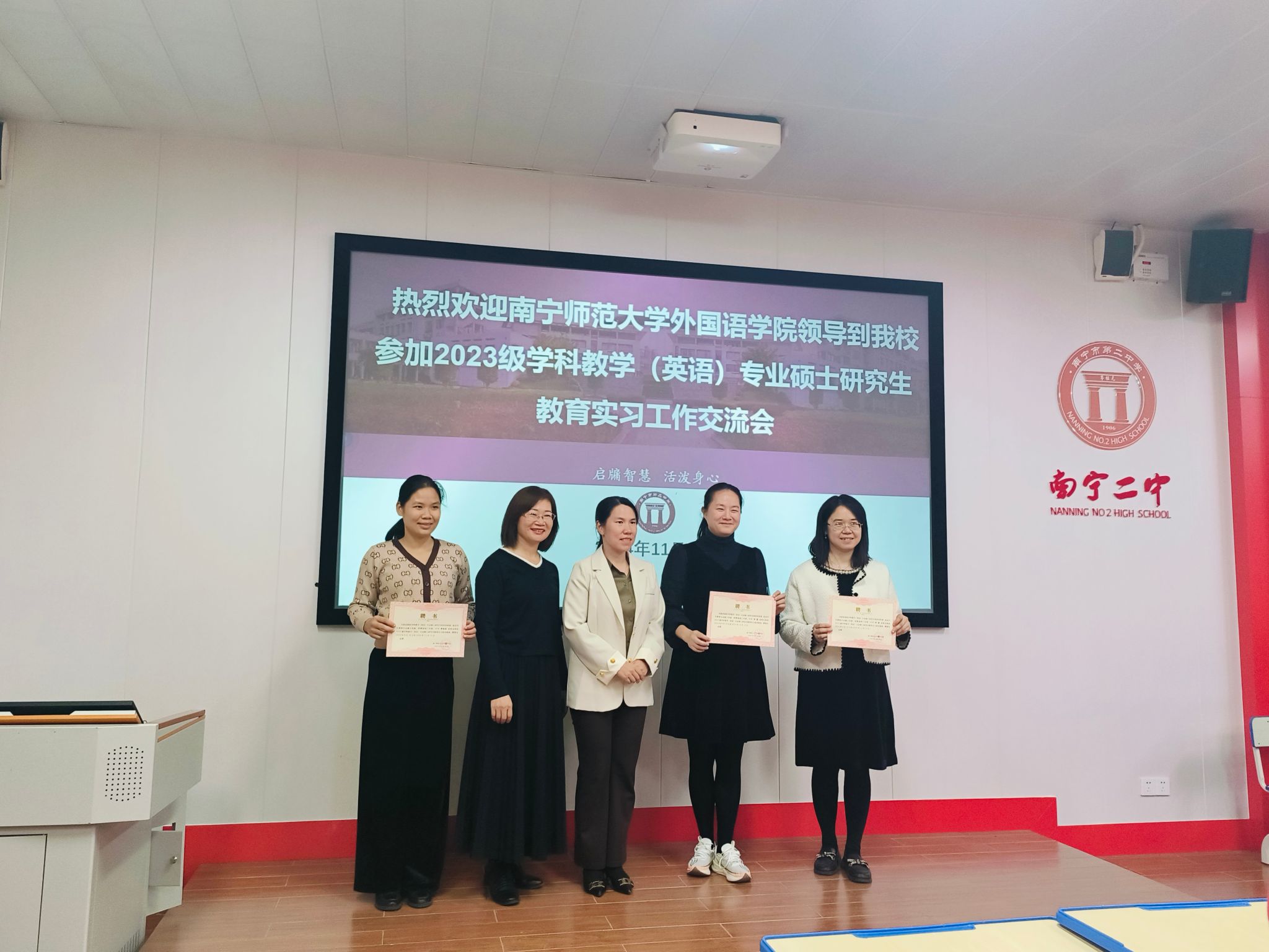 与南宁市第二中学在教育教学合作上的一次深度交流。通过这样的活动,双方将进一步加强合作,为培养更多优秀的教育人才而努力。期待实习生们在未来的实习生活中继续砥砺前行,收获更多成长与进步。