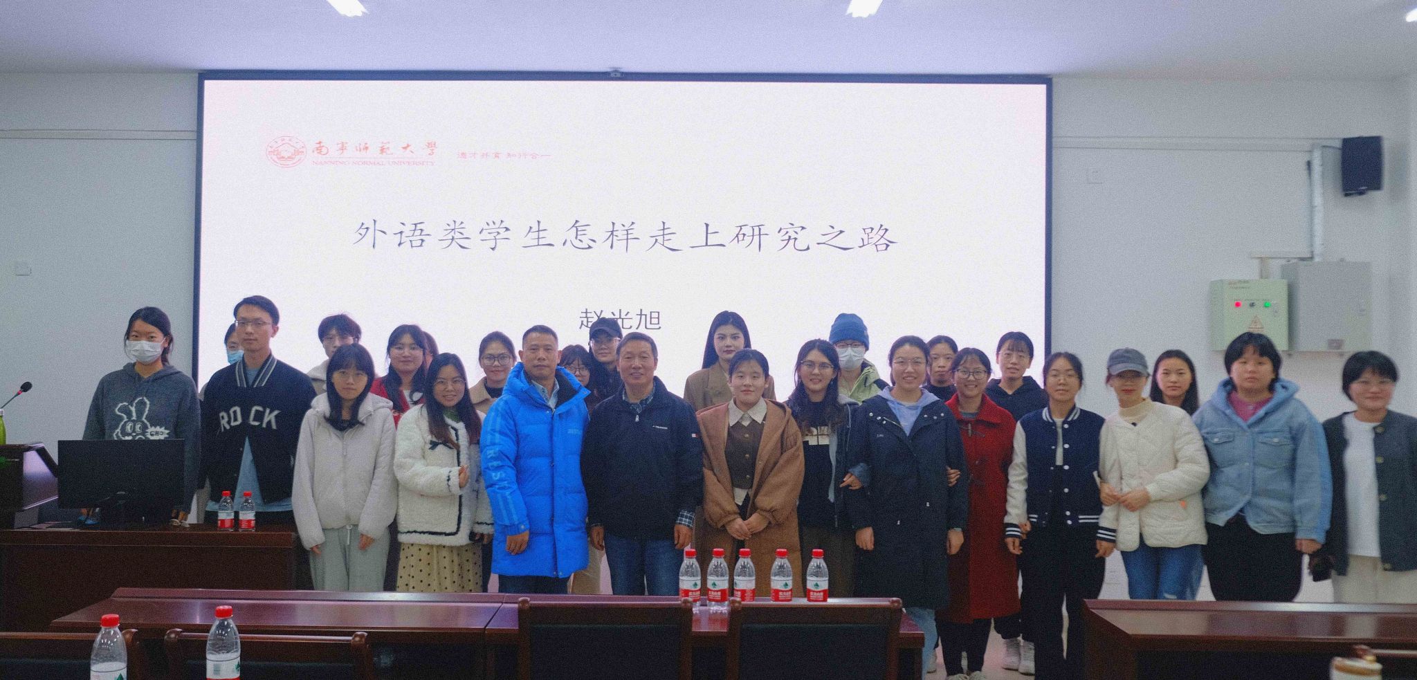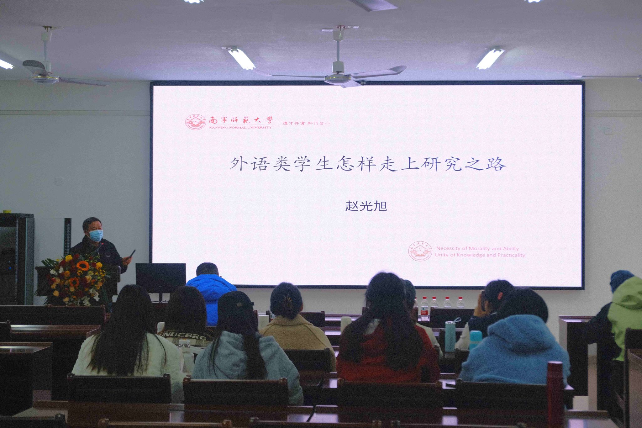 讲座分为以下五部分:“如何规范自己的学术伦理”,“如何走在学术领域最前沿”,“如何使用专业语言进行研究”,“如何将理论与实践相结合”以及“如何站在巨人的肩膀上”。讲座伊始,赵老师从学者的角度,用正反两个事例着重强调作为学者自身应具备学术伦理的重要性。接下来,赵老师就“怎样走在学术领域的最前沿”展开了详细的讲解。作为一名英语专业的研究生,我们应该与学术最前沿的信息接轨,广泛阅读国内外语类最新期刊文章,及时掌握最新信息,了解本领域的发展动向。赵老师告诉同学们,一定要培养专业的语言能力及敏感性,在学术研究上不断运用强化记忆,从而使自己具备专业术语素养。必须以原文本为基础,以学术理论为指导进行学术研究。在讲座过程中,赵老师运用了大量诸如“余光中先生散文节选”,“相关国家社科研究课题”等实例,以期加深学生的理解。关于学术研究,他还强调:要想站在巨人的肩膀上,在学术上有所突破就必须创新,没有创新就没有收获。并指出:在做学术研究上,找到一个兴趣点,结合前人的经验并努力寻找创新突破口方能有所收获,从而在这条学术之路上走得更稳更好。