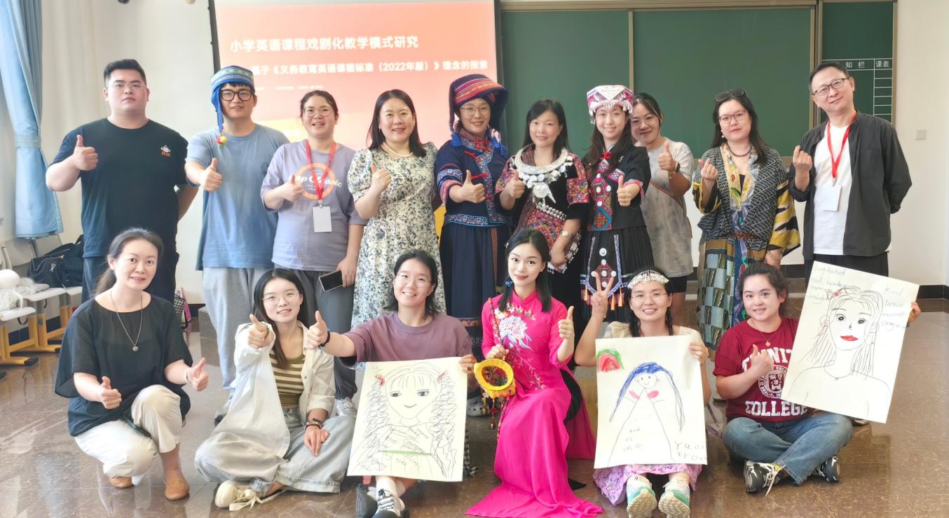 副院长高飞雁、教师叶悦、南宁市华衡小学校长宁罕、科研主任韦静等四人共同主持工作坊,分享团队过去几年在民族地区探索“铸牢青少年民族共同体意识‘教育戏剧+’模式的实践经验,达到铸牢青少年民族共同体意识、促进国际文化交流与理解的目的。