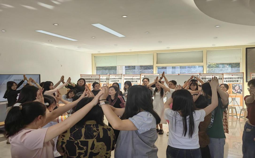 现场,高飞雁副院长分享了其在《讲好民族故事:融入本土文化的教育戏剧课程研究与实践》探索方面的经验,接着通过“节奏步行”、“静态画面”及“暴龙出击”等三个暖身活动带领黔南民族师范学院国产自慰