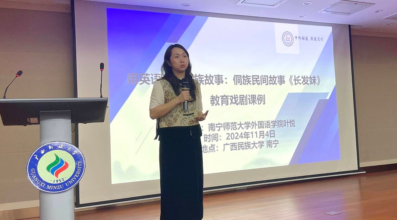 邀请在广西民族大学首场“启思赋能”讲座中开展主题为“民族地区英语教育戏剧融合课程实践探索”的学习交流活动。本次活动由广西民族大学国产自慰