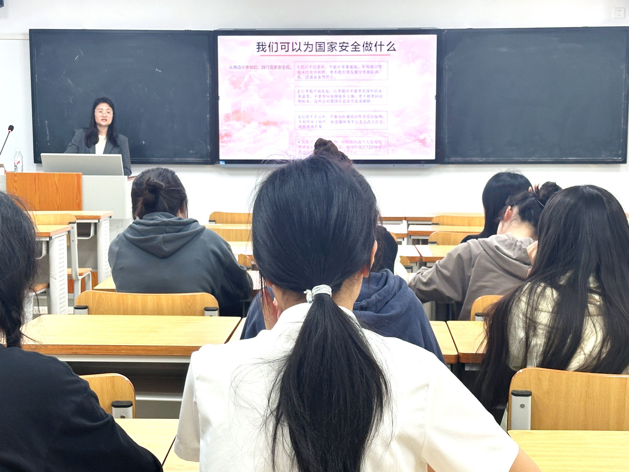 学生的国家安全意识,学院负责团委工作的黄慧梅老师于4月9日晚在2号实验楼B104教室对21级日语班团支部开展“以青年担当,守国家安全”的主题团课宣讲活动。