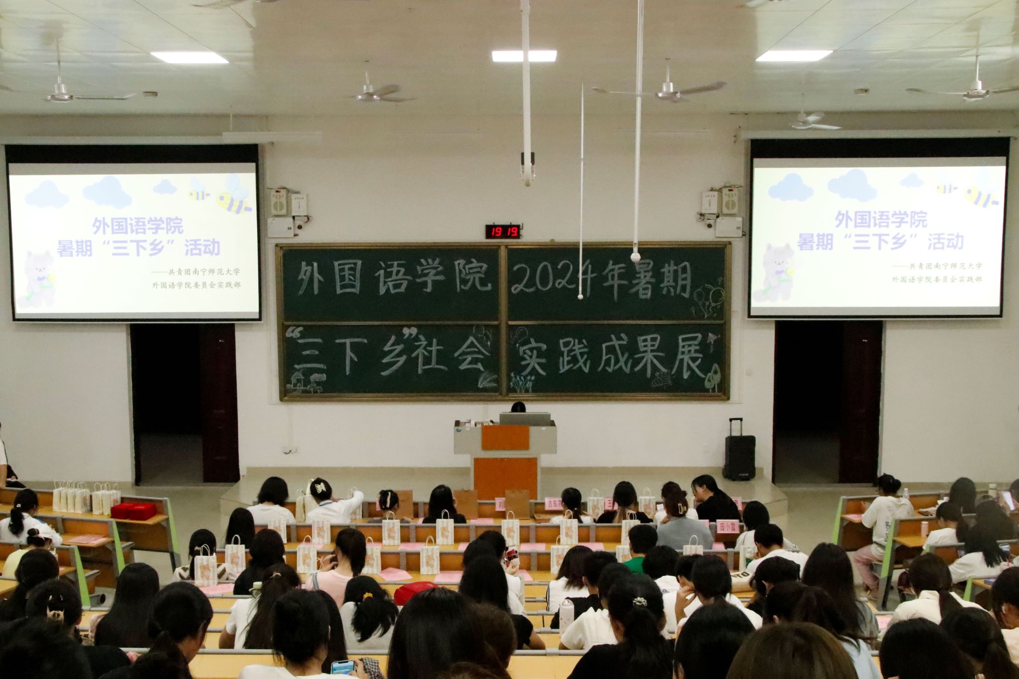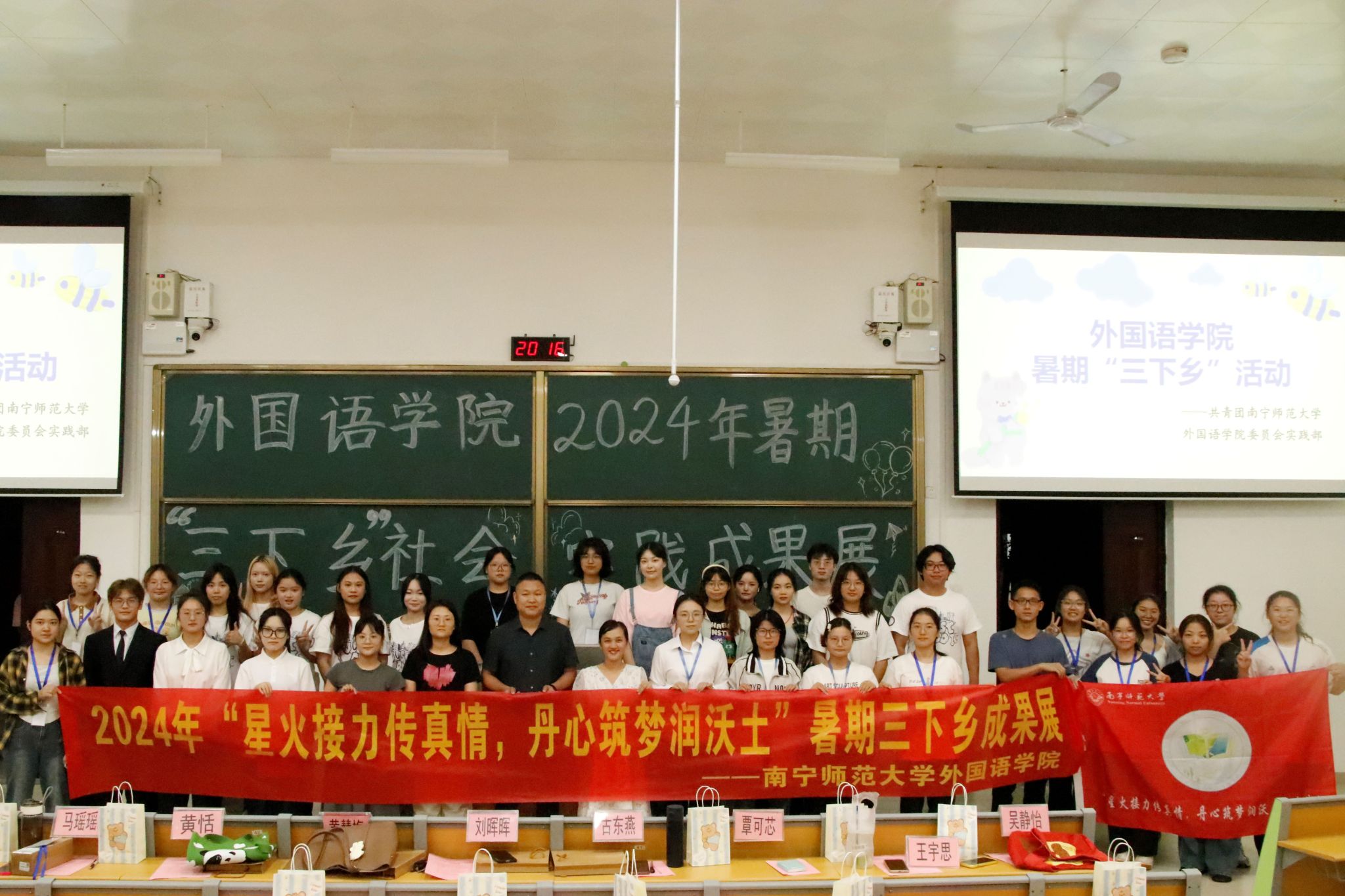 于10月16日晚在武鸣校区实验楼2A-105教室举办“星火接力传真情,丹心筑梦润沃土”为主题的2024年大学生暑期“三下乡”活动成果展。出席本次活动的有国产自慰