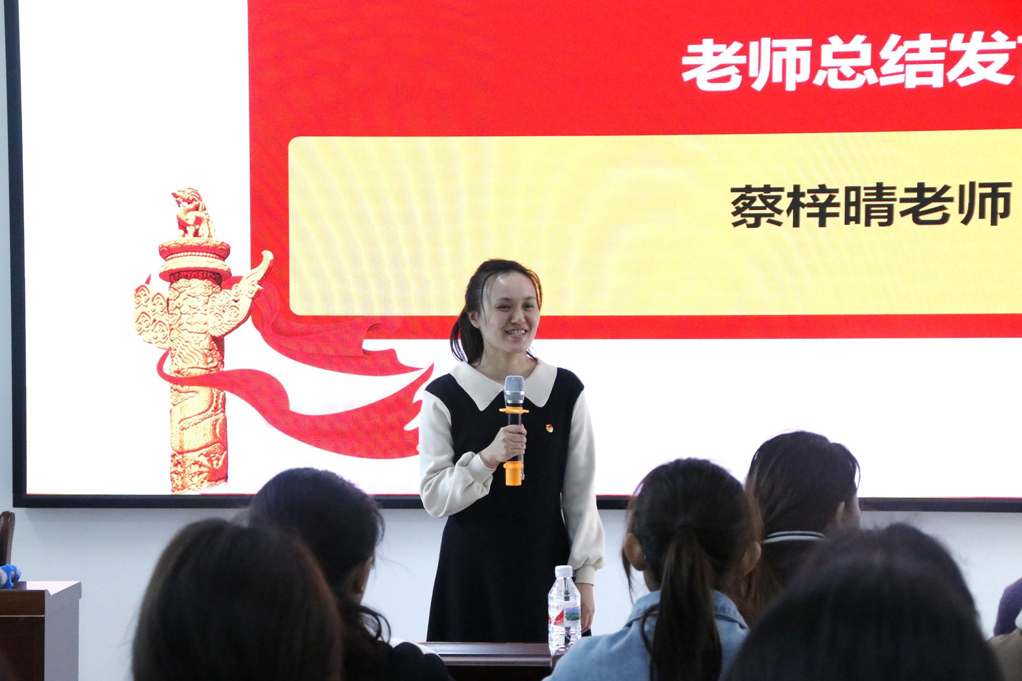 最后,由学工办蔡梓晴老师作本次入团仪式总结。蔡老师以一个问题引入,寄托了对新团员殷切期盼和对老团员的持续信任。这次仪式不仅壮大了共青团员的队伍,发扬了奉献友爱的共青团员精神,还坚定了他们新时代争做挺膺担当的新青年的信心,让他们能够承担起作为共青团员的义务,挥洒青春汗水,贡献青春力量。