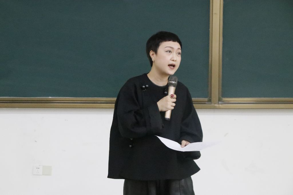 石亿老师结合现场表现,针对“模拟演讲”提出三点思考:需明确“演讲的主讲人是谁”“为何发表此段演讲”以及“如何在演讲中实现语气与情感的转换”;针对“擂台赛”环节的自主演讲,她给出核心建议:一是先“破题”,把主题范围缩小;二是让演讲内容贴近个人,凸显个性化,避免“宣讲式”表达;三是强化说服力,灵活运用各类修辞表达技巧。石老师的点评既为参赛选手精准指明了提升方向,也为全院学子提供了实用的演讲学习指引。