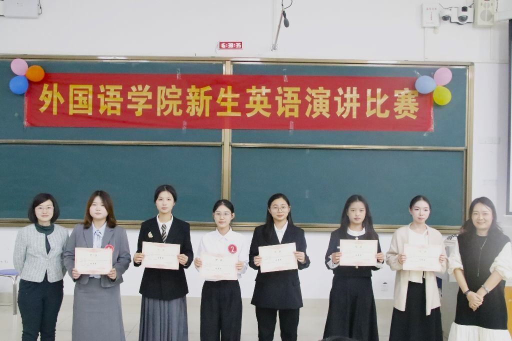 在武鸣校区一号教学楼215教室顺利举办2025级新生英语演讲比赛。肖西西、夏莉、王珏、石亿、林绍丽五位老师受邀担任评委,学院党委刘晖晖副书记、学工办蔡梓晴、黄慧梅、黄恬、王倩、张新举等老师出席此次活动;部分团副主席团成员及2025级全体新生共同参与。