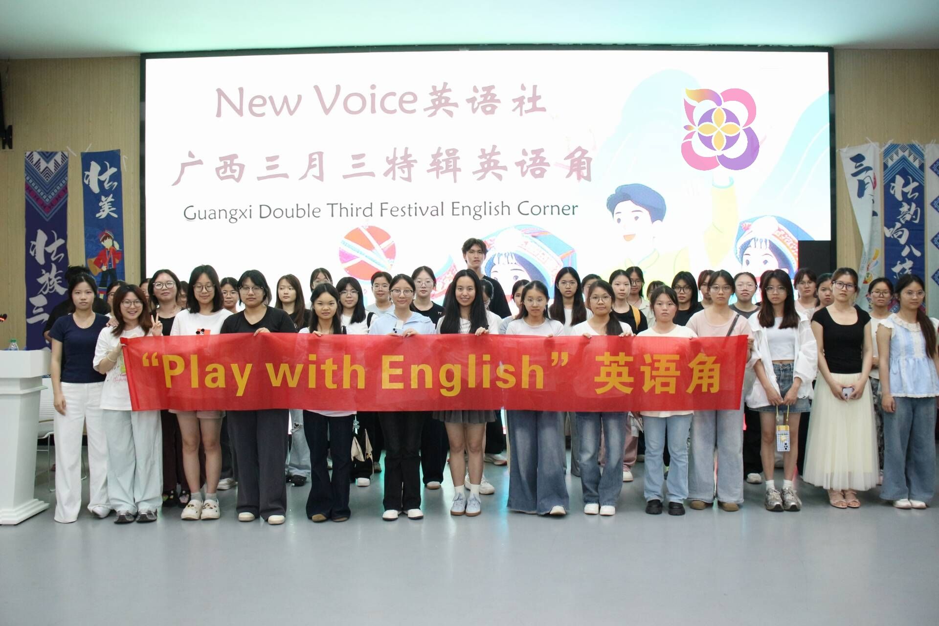 New Voice英语社于4月10日在武鸣校区兰园食堂三楼大创场地举办广西“三月三”主题英语角活动。国产自慰