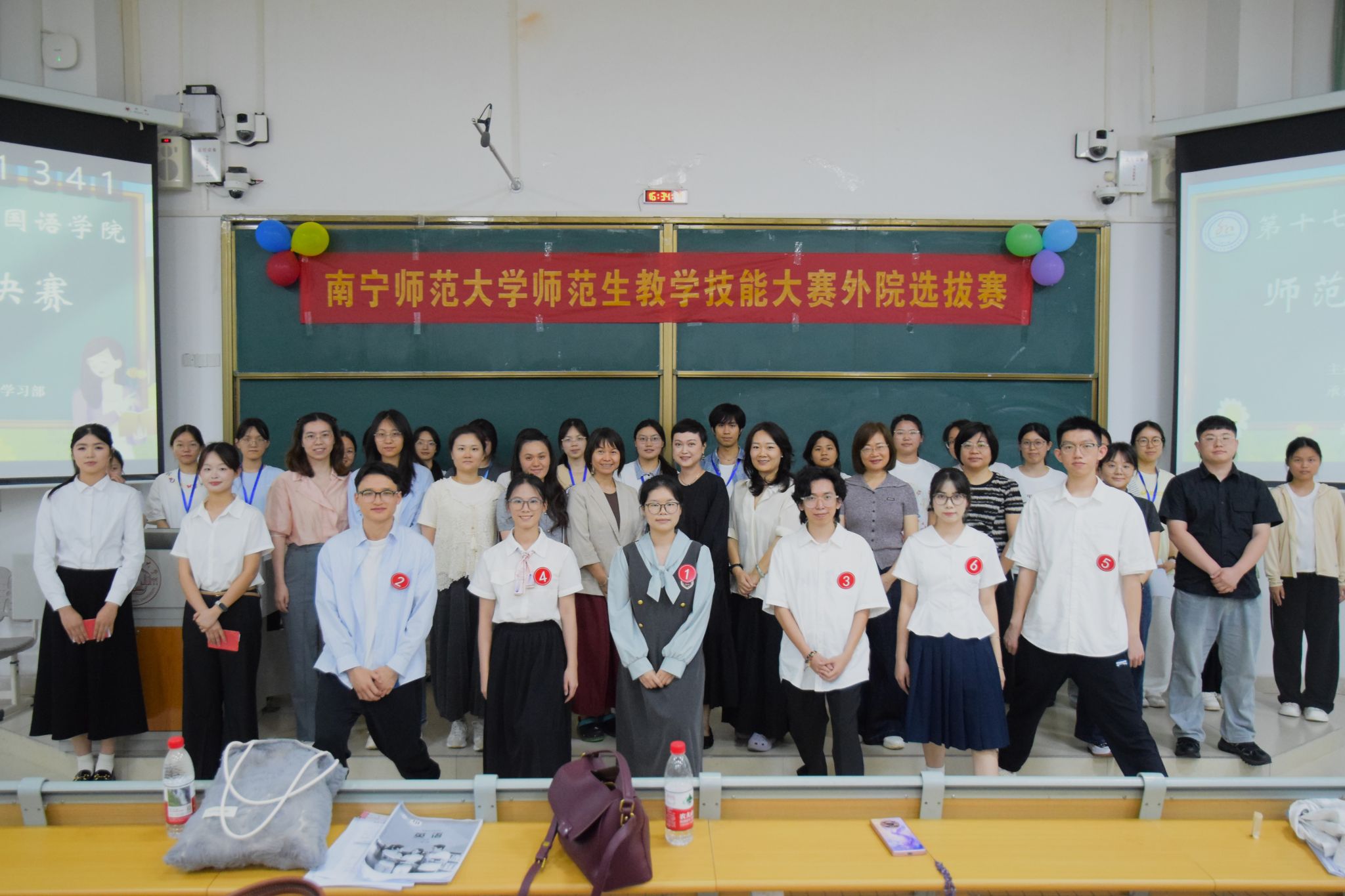 师范生教学技能大赛院级选拔赛决赛。本次大赛特邀学院教师教育教研室林绍丽、石亿、邓芳娇、蔡焱和王远芳五位专业教师担任评委,并就师范生教学技能后续培养展开研讨。学院党委副书记邱晖、学工办全体老师以及团委学生会团副主席团成员到场观赛。经初赛、复赛层层选拔,6名2023级英语专业、商务英语专业优秀学子晋级决赛同台竞技。