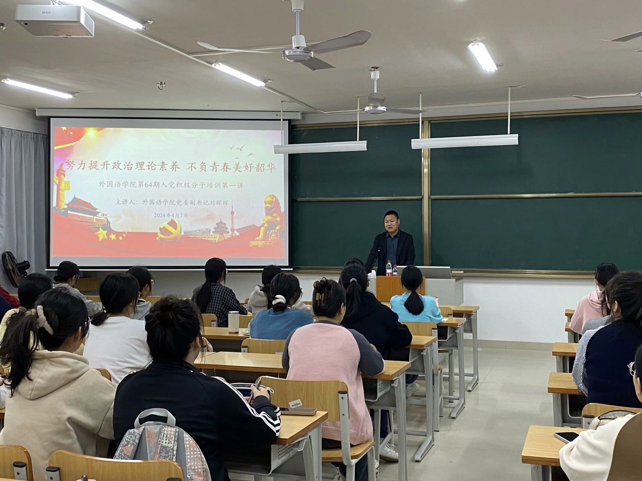 党委在实验楼2-C203教室举办第64期入党积极分子培训会第一讲。本次培训会主题为“努力提升政治理论素养,不负青春美好韶华”,由国产自慰
