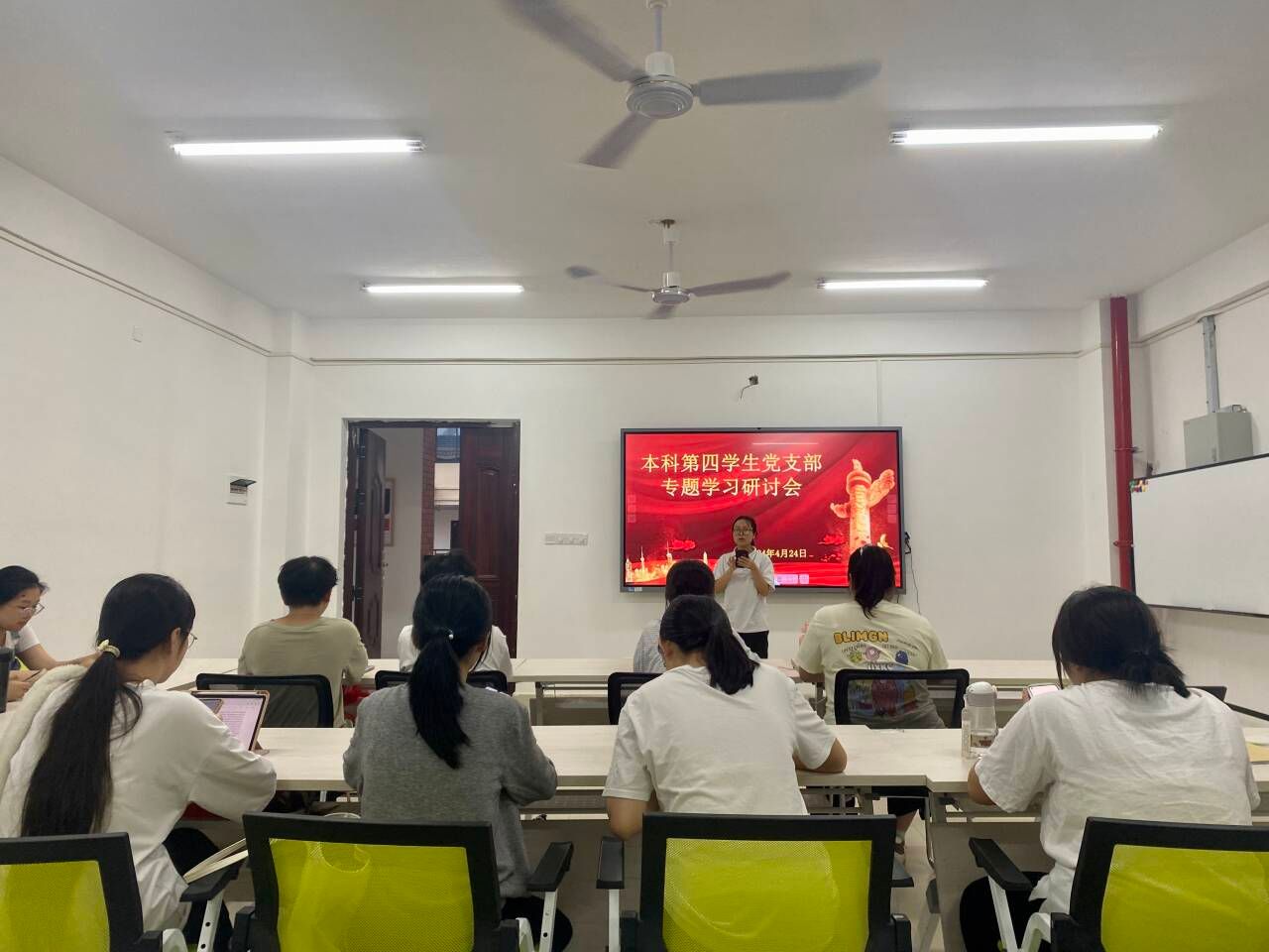 本科第四学生党支部在实验楼1-B516教室组织预备党员开展专题学习研讨会,本次研讨会是学校第二十期预备党员培训的内容之一。