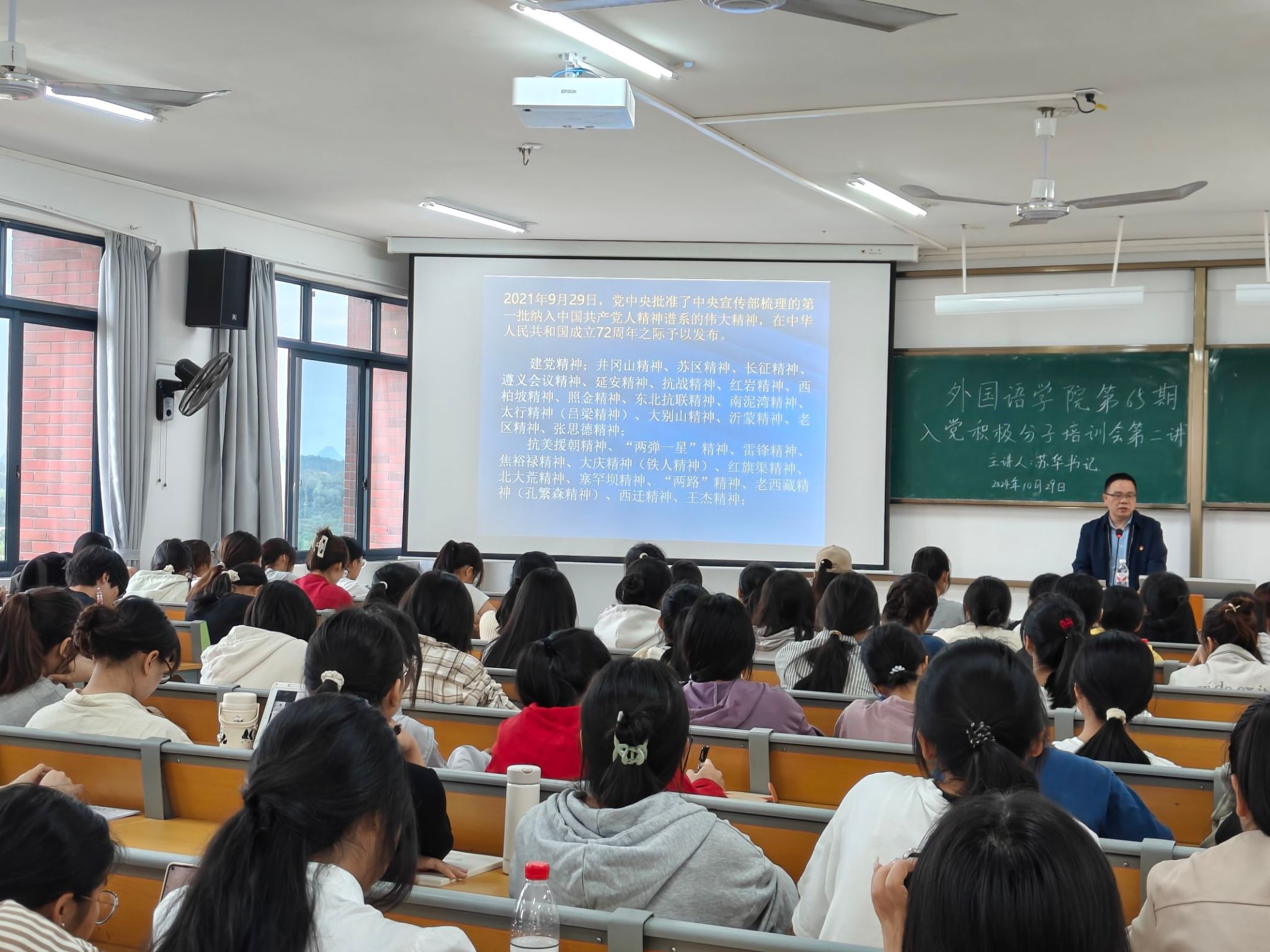 随后,苏华书记带领入党积极分子们共同学习党的精神谱系的逻辑结构,包括不同时期展现出的不同时代精神和以党的英雄、烈士、模范人物为标志的精神。他殷切希望入党积极分子们能学习贯彻党的二十大精神。