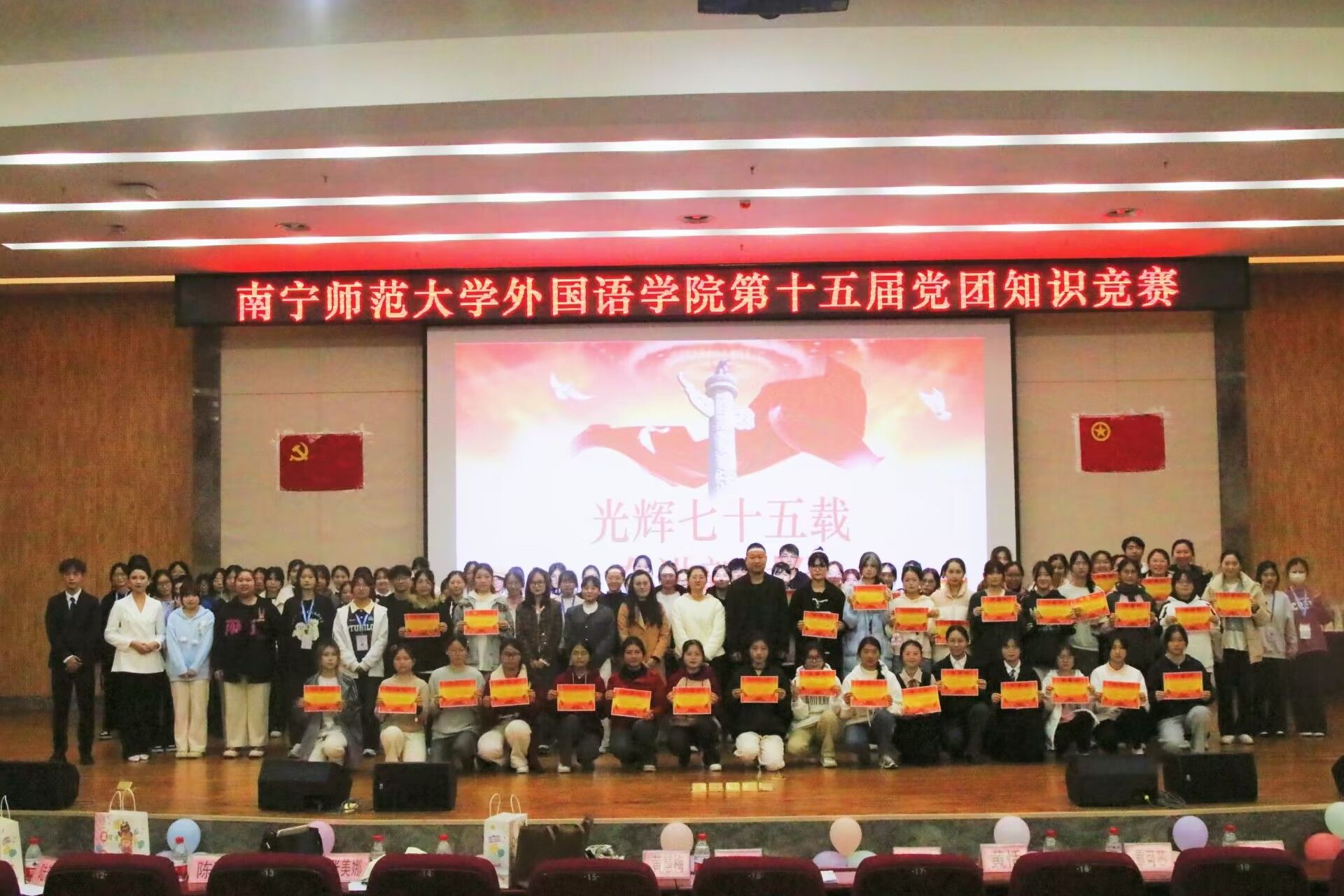 于武鸣校区图书馆报告厅举行以“光辉七十五载,奋进新时代”为主题的第十五届党团知识竞赛。国产自慰
