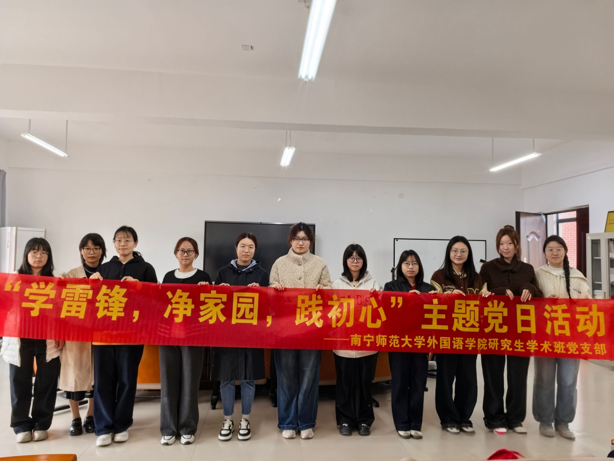 研究生学术班党支部在党员活动室开展了 “学雷锋,净家园,践初心” 主题党日活动。活动由党支部书记马旭冉主持,党员们以实际行动践行初心使命,让雷锋精神在新时代绽放新光芒。