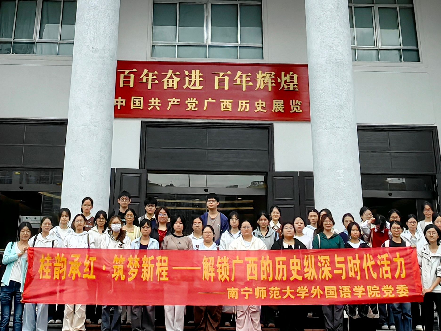 党委组织第67期入党积极分子于11月9日上午赴广西展览馆开展“桂韵承红·筑梦新程——解锁广西的历史纵深与时代活力”主题实践活动。本次活动共有28名入党积极分子参与。