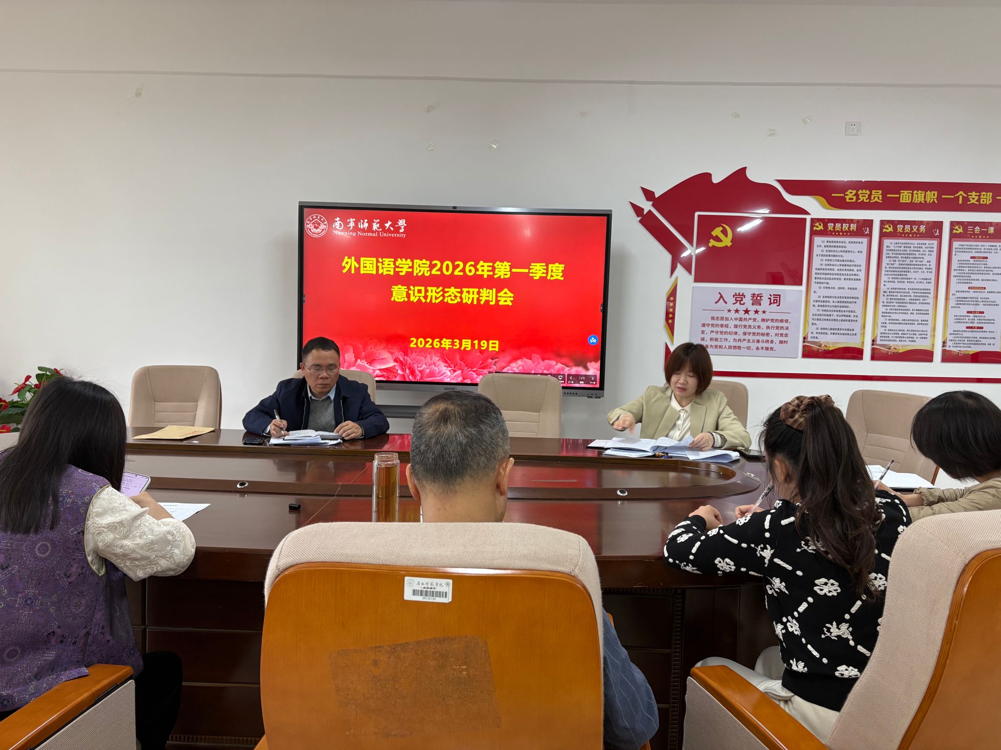 党委在武鸣校区实验教学楼B614召开2026年第一季度意识形态形势分析研判会,传达学校意识形态工作部署要求,分析和研判学院近期意识形态领域形势,部署学院第一季度意识形态工作。学院党委书记苏华主持会议并作讲话。学院领导班子成员、党委委员和纪委委员参加会议。