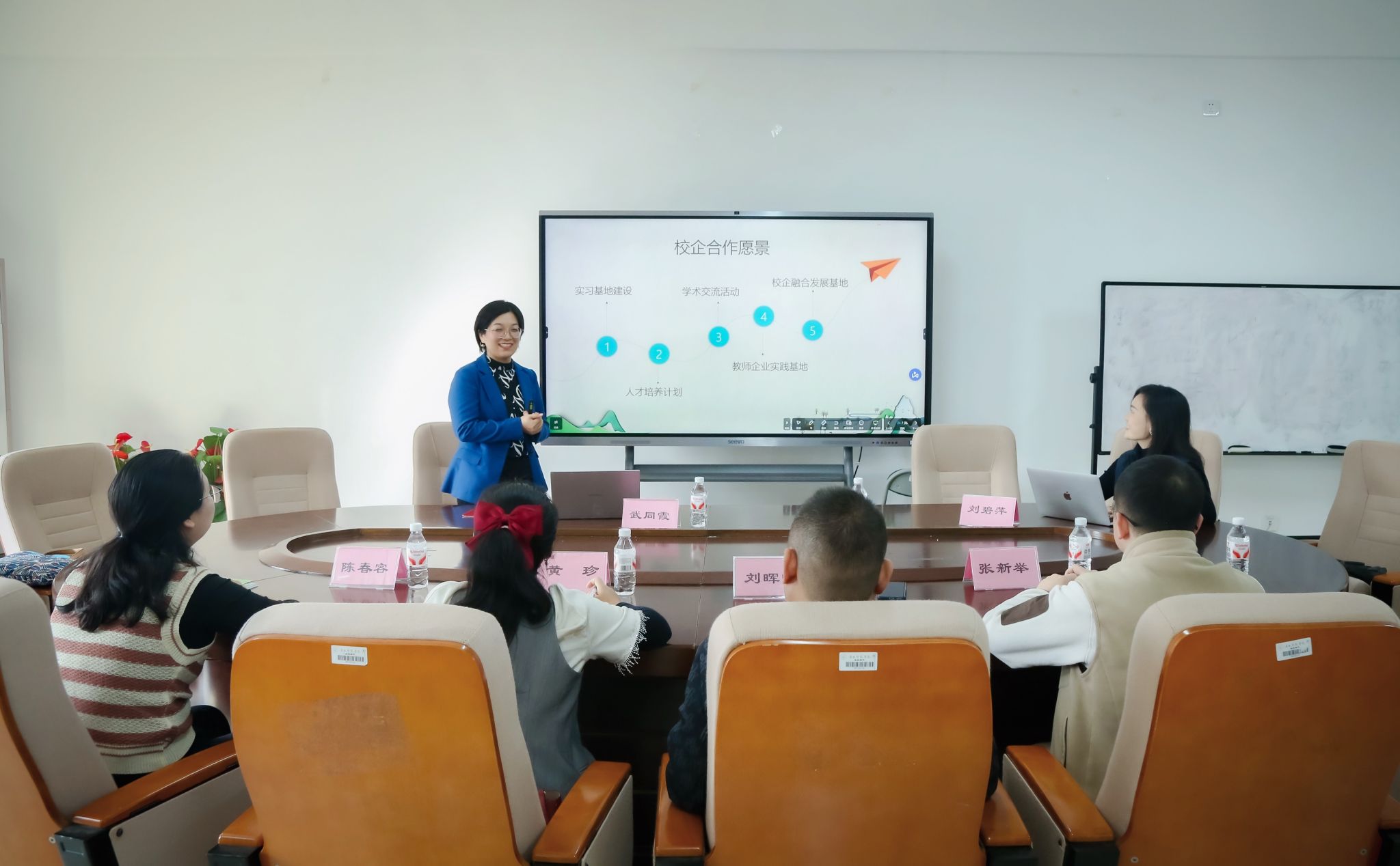 座谈会上,学院代表首先对企业的到访表示热烈欢迎。随后,武同霞总经理详细介绍了公司的发展概况、业务布局及未来规划,并重点阐述了关于共建实习实践基地、联合制定人才培养计划、开展学术交流活动、建立教师企业实训平台以及打造校企融合发展基地等一系列合作构想。