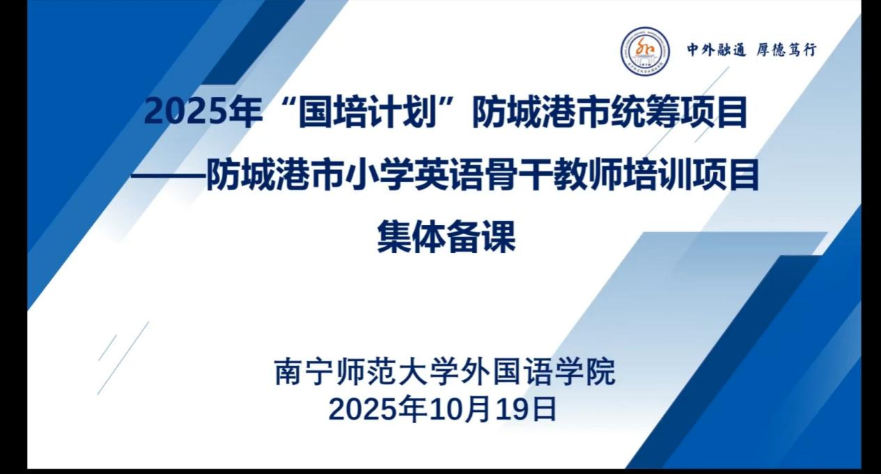 于10月19日上午召开了2025年“国培计划”——防城港市统筹项目小学英语骨干教师培训班线上备课会。会议旨在全面部署培训工作,明确教学任务与要求,为确保该项目的高质量实施奠定坚实基础。国产自慰