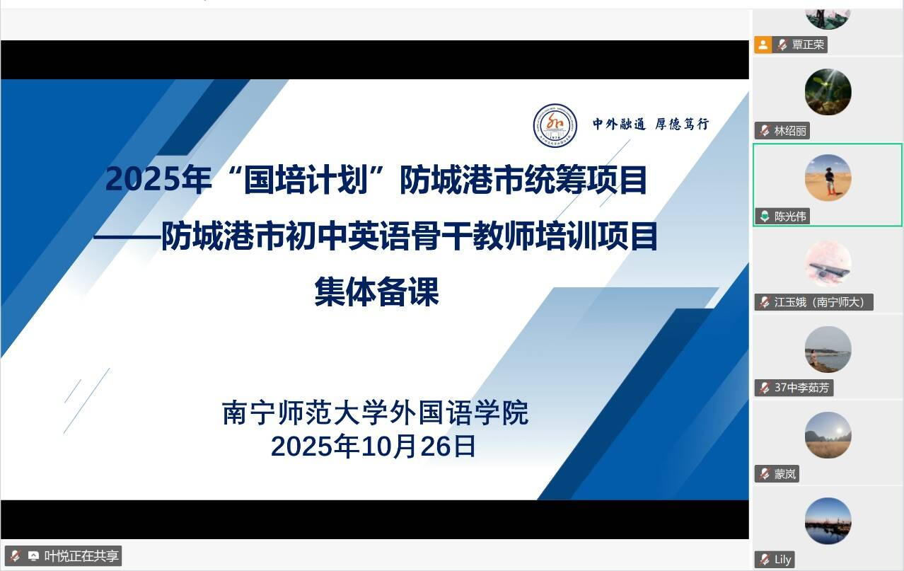 10月26日晚,2025年“国培计划”防城港市统筹初中英语骨干教师培训班集体备课会在线上顺利举行。本次会议由国产自慰
