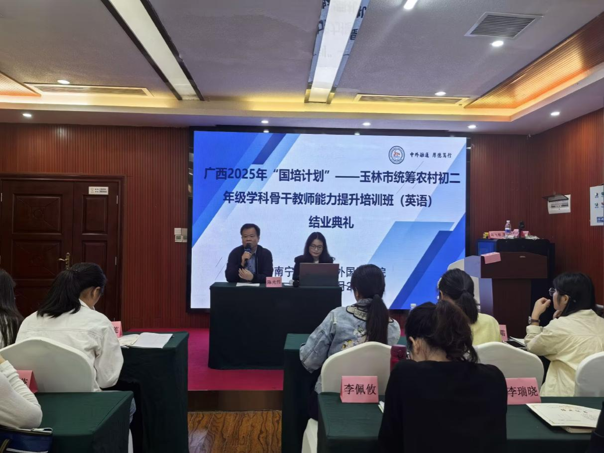 承办的广西2025年“国培计划”——玉林市农村初二年级英语骨干教师能力提升培训班顺利完成全部议程,在南宁圆满收官。来自玉林市各初中的80名英语教师通过为期7天的集中研修与跟岗实践,系统完成了培训任务,实现专业能力全面提升。