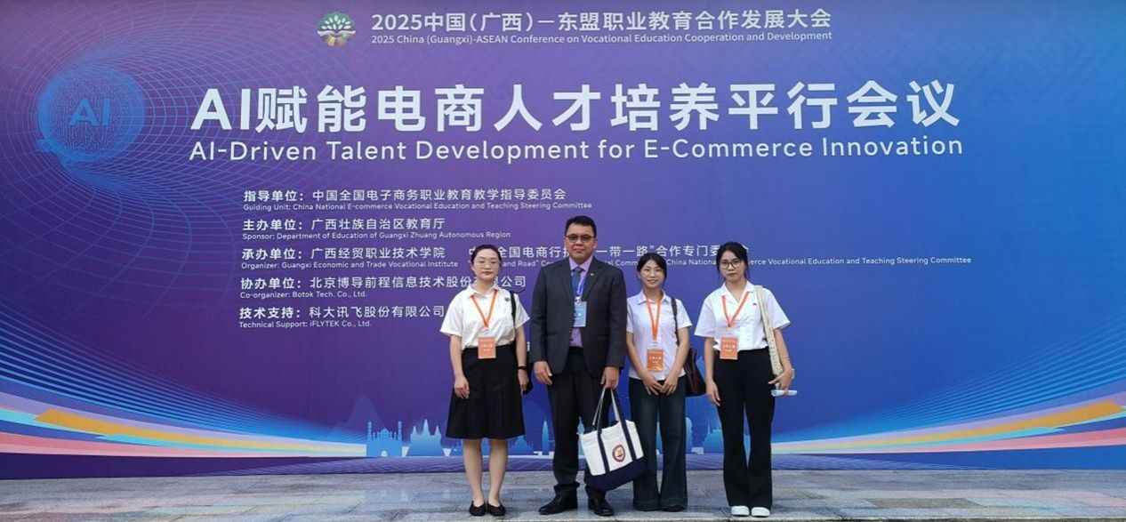 在“中国—东盟职业教育合作发展大会‘AI赋能电商人才培养’平行会议”中,我院派出4名本科生——谢敏、徐千惠、吴丽娜、黄天丽作为外事志愿者,共同参与了文莱、老挝、马来西亚、菲律宾、印尼等几国外宾的接待工作,包括东南亚教育部长组织职业技术教育与培训区域中心主任诺米杰·宾·杰内克、老挝国家工商会部门副主任霍内萨万·查塔旺、马来西亚人力资源部技能发展司职业标准与职业技术教育培训课程处处长沙赫鲁尔·尼扎姆·卡西姆、菲律宾技术教育与技能发展署北三宝颜省办公室负责人艾伦·巴卡坦、印尼西爪哇省苏邦县西勒贡第一国立职业技术学校校长等外宾的行程引导和文化讲解等。