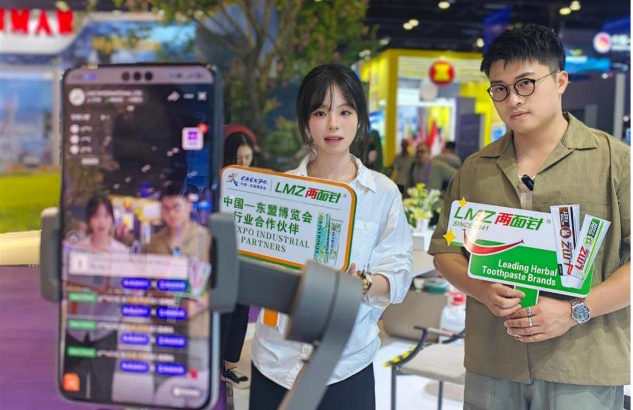 22级本科生黎妍妍曾任区级大创负责人兼英文主播,在本次博览会上,她凭借丰富的项目经验顺利成为柳州两面针公司的“东博会”英文主播,“融入企业后,我不仅完成了直播本职,更参与了直播策划、复盘和现场嘉宾口译等工作。经历了走播和临场口译等挑战,我深刻体会到‘提前准备’与‘主动沟通’的力量,这让我突破了经验的边界”。