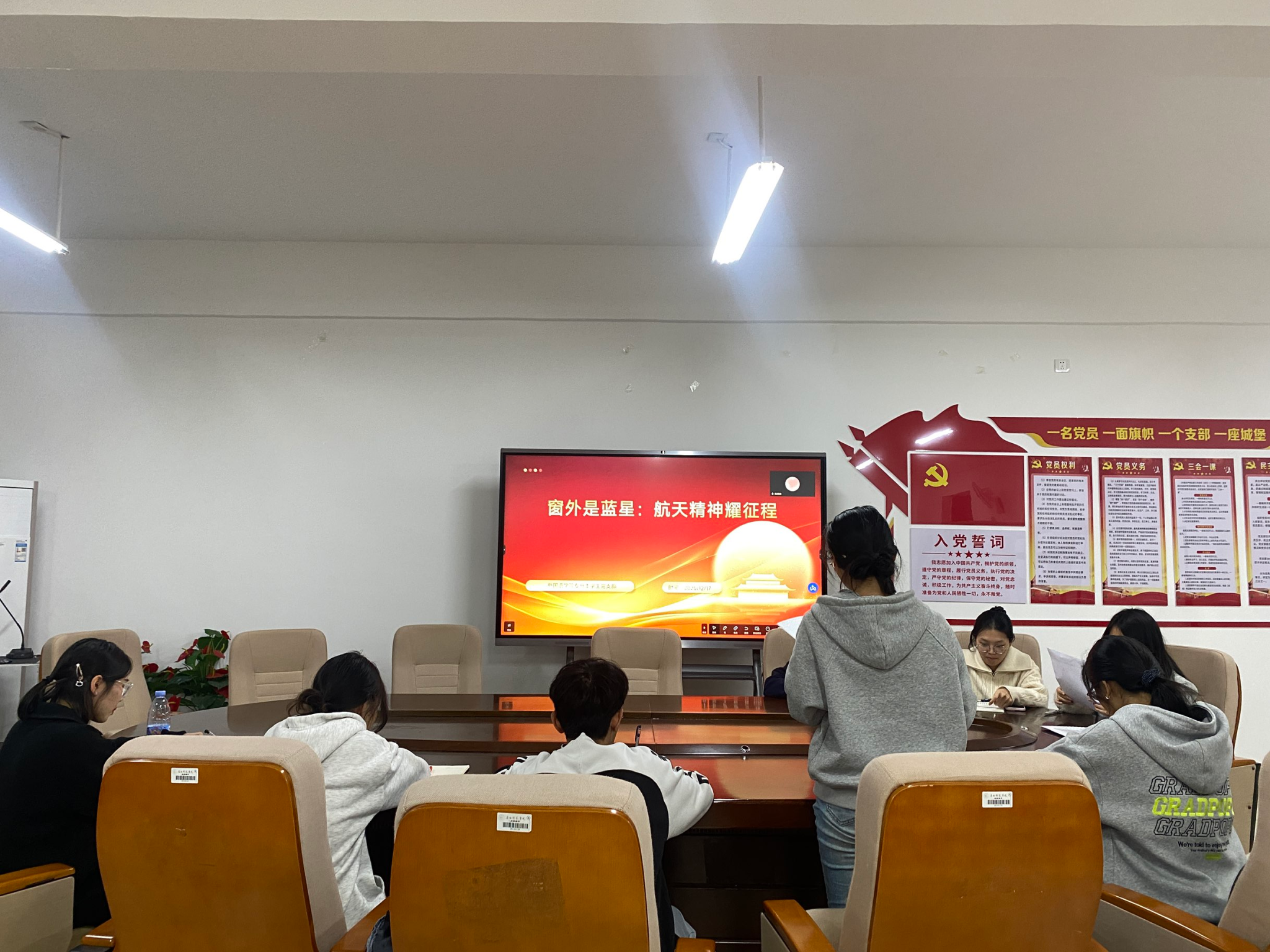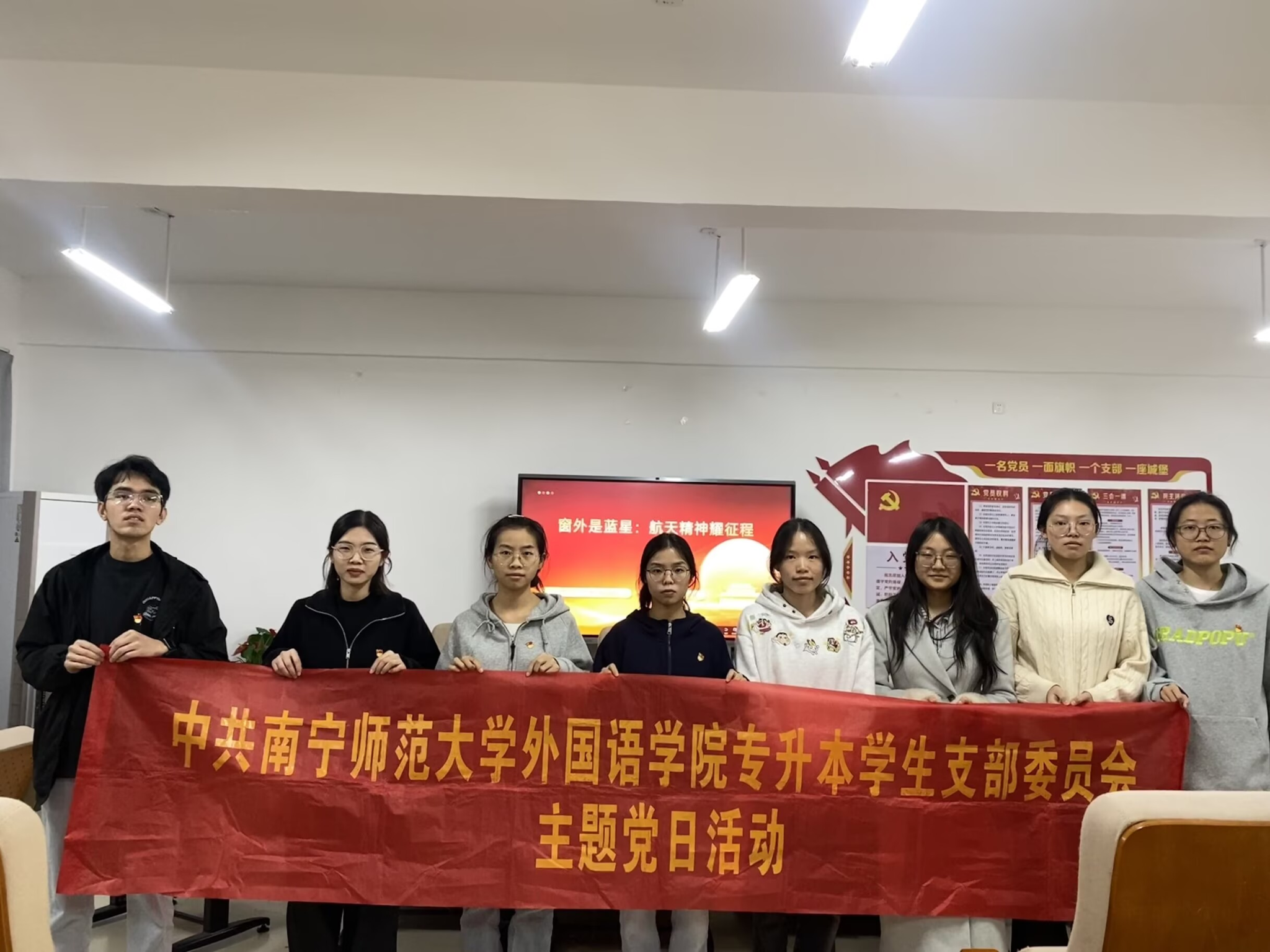 专升本学生党支部在实验楼1B-614开展“学习航天精神,凝聚奋进力量”主题党日活动。